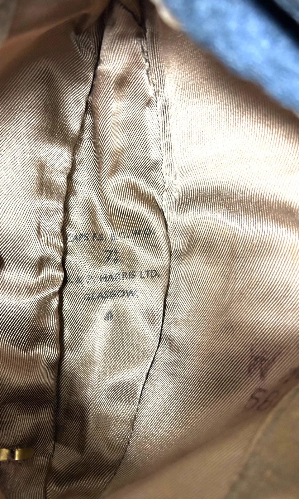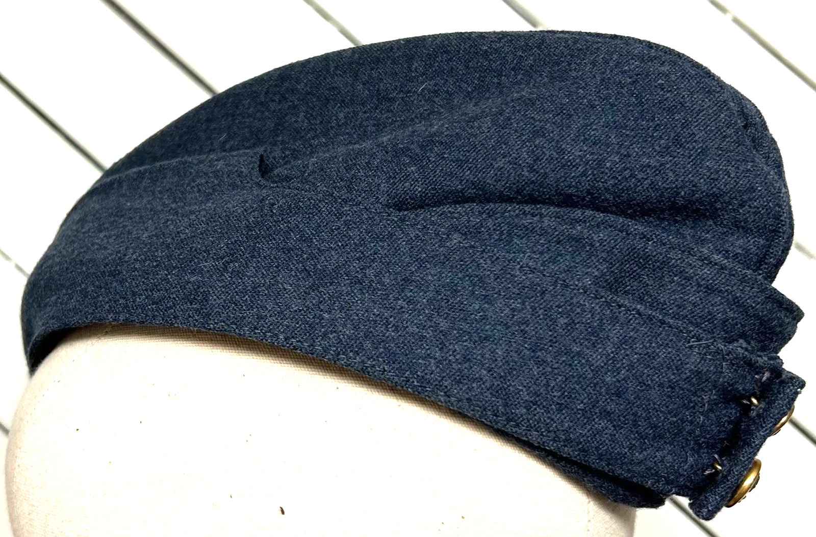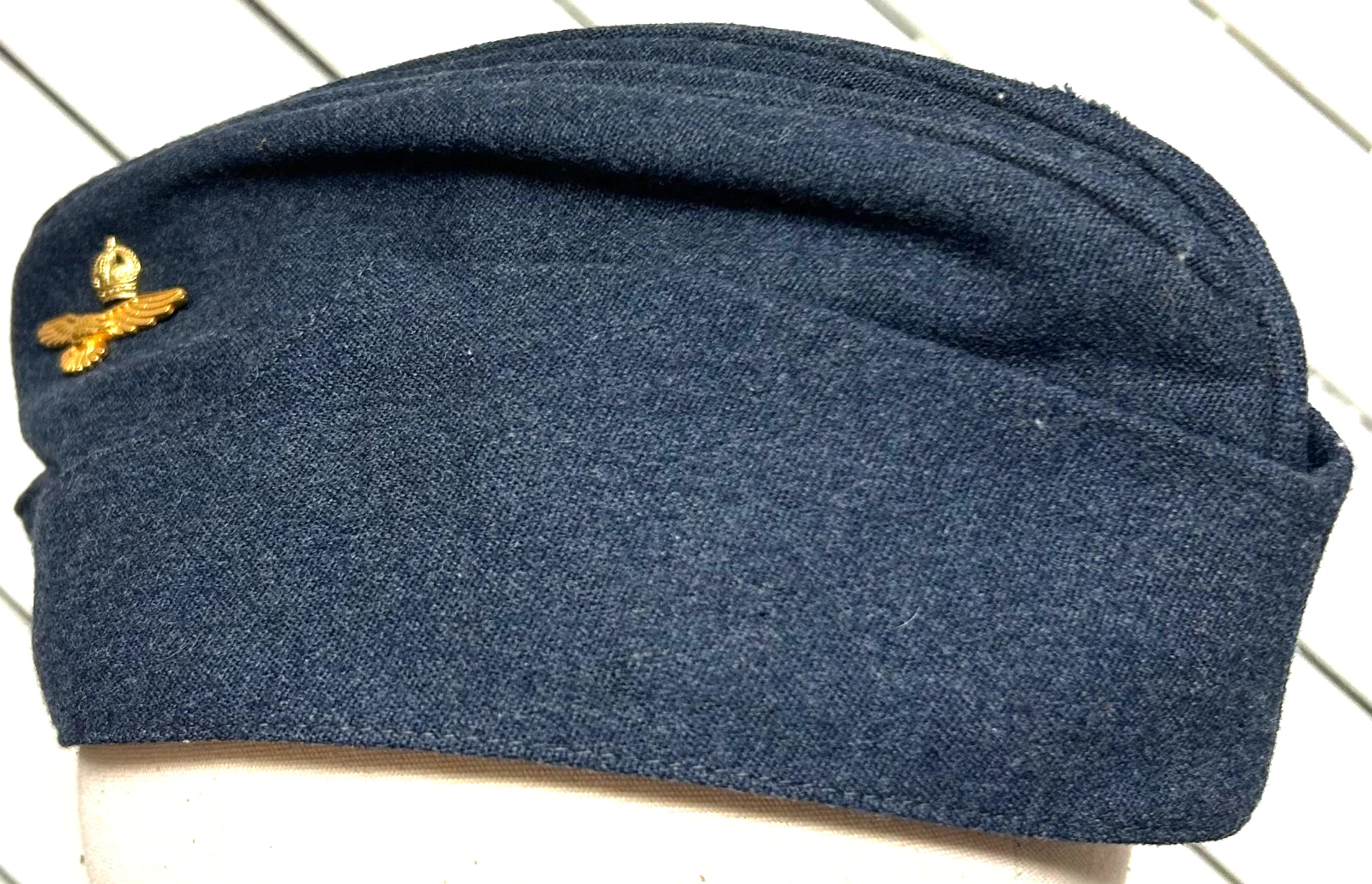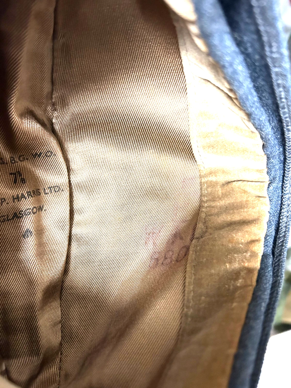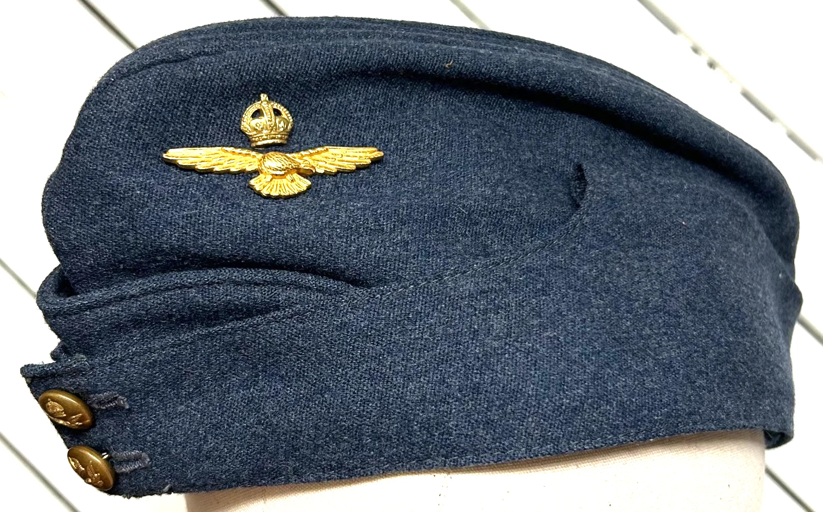 WWII British Officers RAF Forage Cap. Cap is a size 7 3/8. Worn by British RAF Officers during WWII and after. The cap is in excellent condition, showing very little wear both inside and out. Nice velvet sweatband stitched into the interior. Nice strong stamps such as the Harris maker mark.
